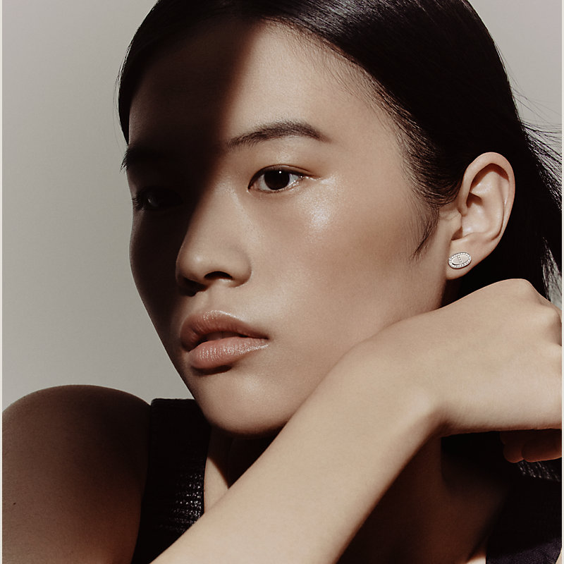 白金镶钻耳环。