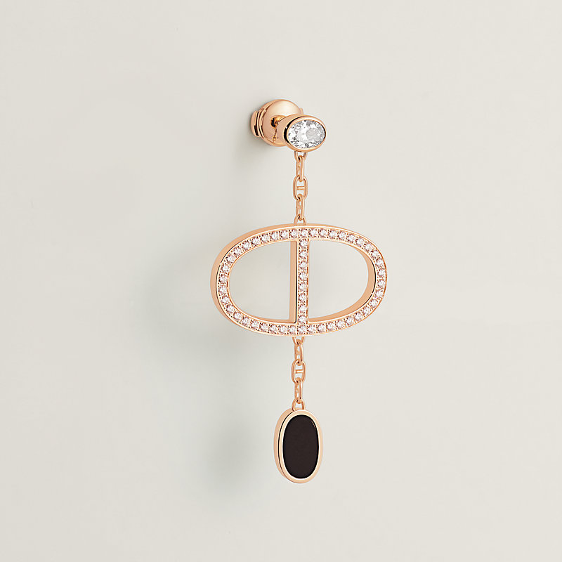玫瑰金和黑色陶瓷镶钻单耳悬垂式耳环。