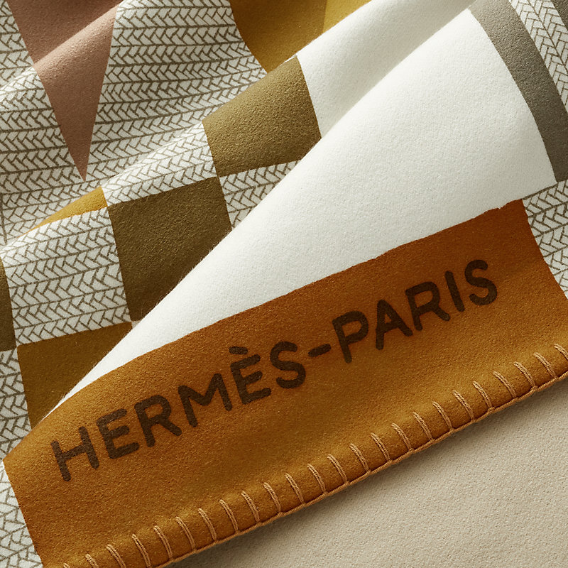 山羊绒毛毯,饰有“Cheval Natte”图案印花。
