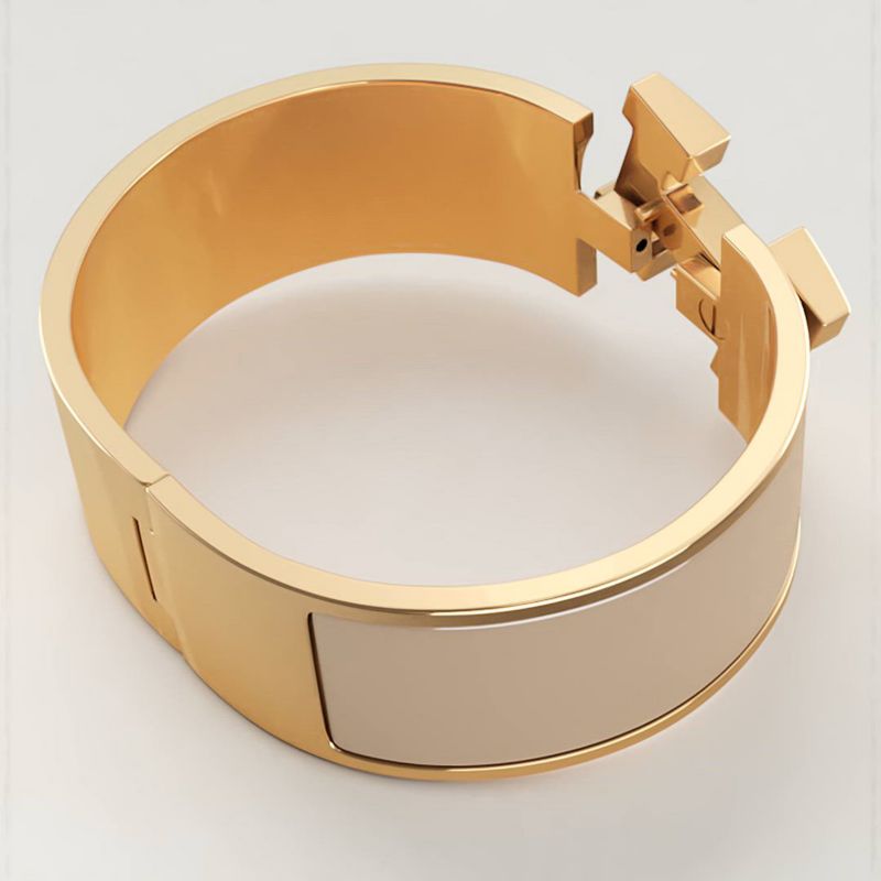 如同一场逆向创作,三步完美呈现爱马仕手镯。1、将手镯灵巧滑向腕间。2、轻合搭扣。3、旋转搭扣。咔哒,创作完成!