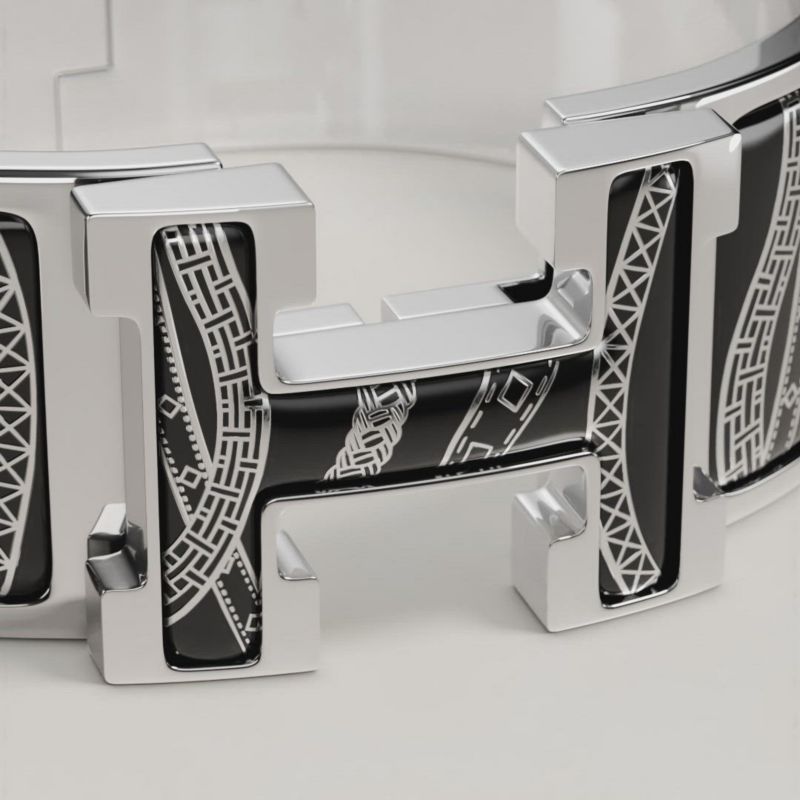 1、2、3……咔哒 如同一场逆向创作,三步完美呈现爱马仕手镯。1、将手镯灵巧滑向腕间。2、轻合搭扣。3、旋转搭扣。咔哒,创作完成!