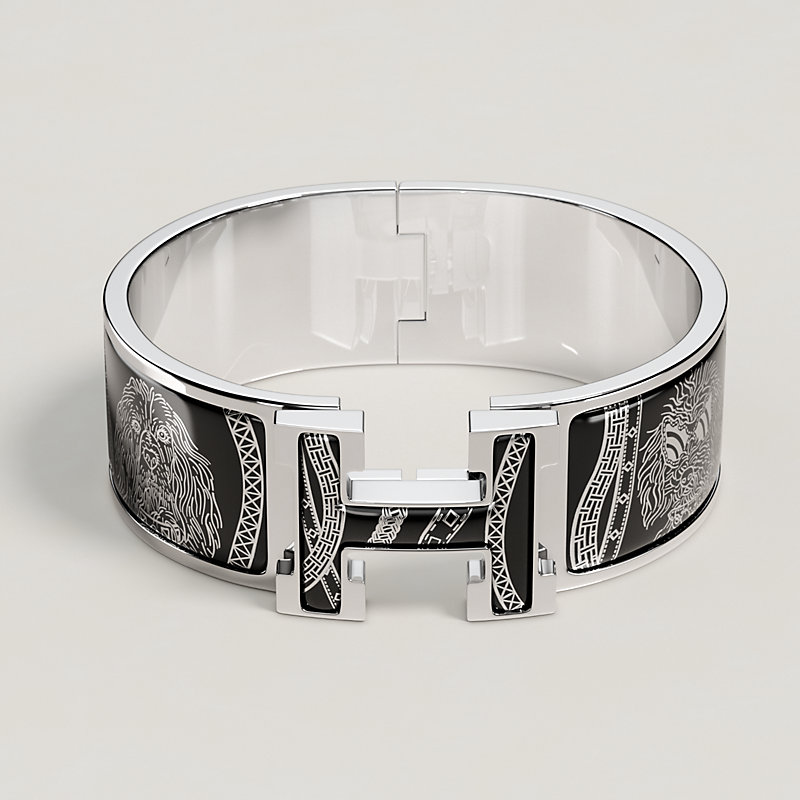 “狗狗选角日”图案印花珐琅宽版手镯,由丽兹·斯特林(Liz Stirling)设计。这款手镯配有精巧的“H”造型锁扣,开合自如。