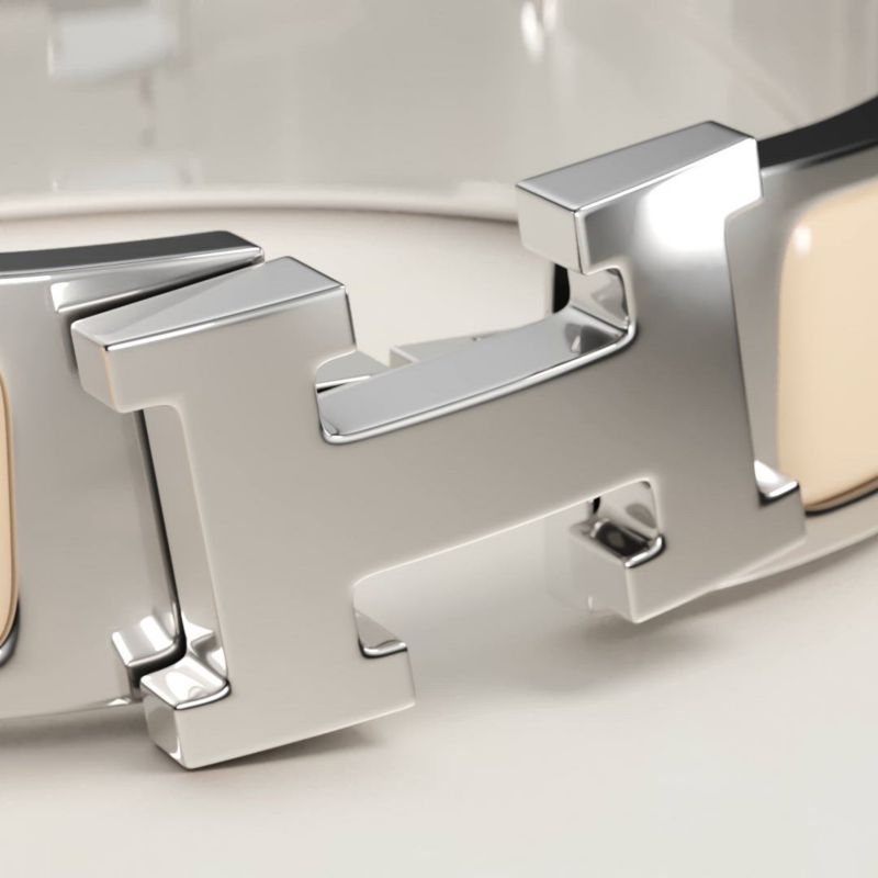 1、2、3……咔哒 如同一场逆向创作,三步完美呈现爱马仕手镯。1、将手镯灵巧滑向腕间。2、轻合搭扣。3、旋转搭扣。咔哒,创作完成!