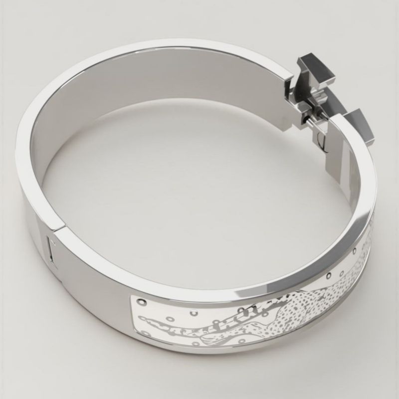 “Clic H猎豹”手镯, 贵金属色 铂金灰/白色
