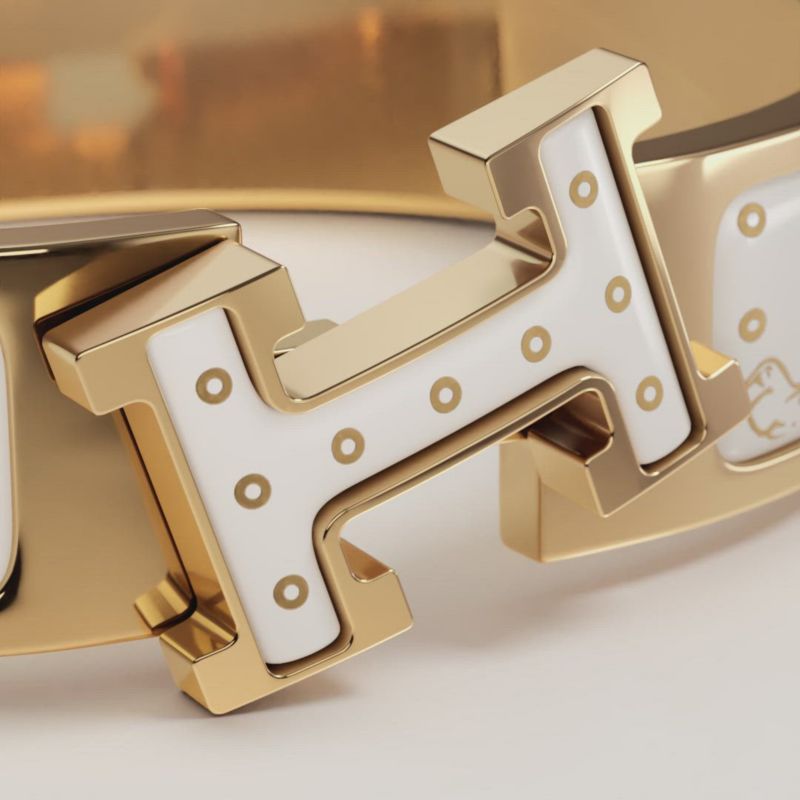 1、2、3……咔哒 如同一场逆向创作,三步完美呈现爱马仕手镯。1、将手镯灵巧滑向腕间。2、轻合搭扣。3、旋转搭扣。咔哒,创作完成!