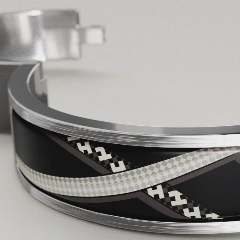 “神驹幻象”图案印花珐琅窄版手镯,由迪米特里·利拜申科(Dimitri Rybaltchenko)设计。