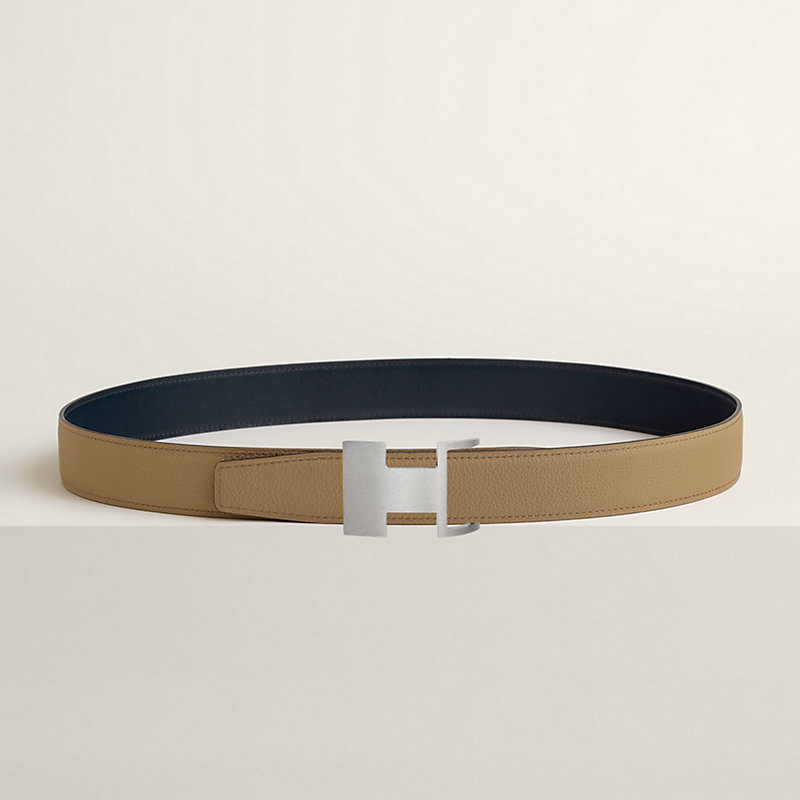 不锈钢皮带扣。Dive 32皮带扣运用几何设计与隐藏式曲线,巧妙嵌入皮腰带之中。皮革与金属优雅契合,呈现近似“H”字母的不对称造型。金属质感: 磨砂不锈钢 & Box 135和Togo小牛皮双面皮腰带。