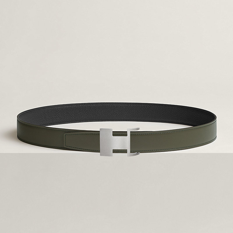不锈钢皮带扣。Dive 32皮带扣运用几何设计与隐藏式曲线,巧妙嵌入皮腰带之中。皮革与金属优雅契合,呈现近似“H”字母的不对称造型。金属质感: 磨砂不锈钢 & Box 135和Togo小牛皮双面皮腰带。