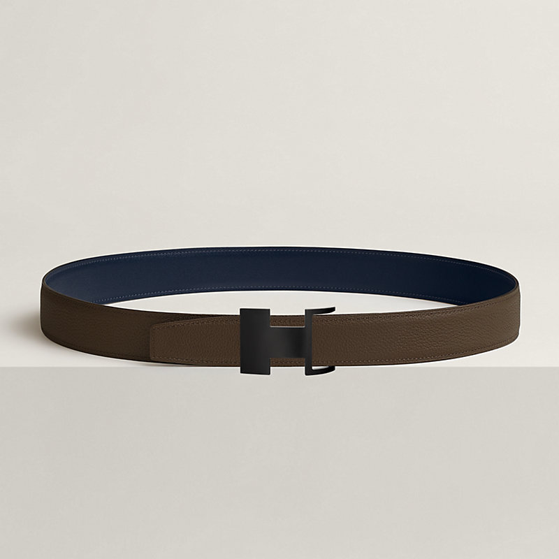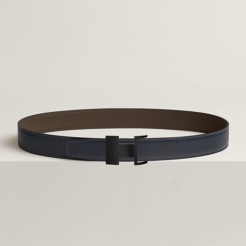 不锈钢皮带扣。Dive 32 So Black皮带扣运用几何设计与隐藏式曲线,巧妙嵌入皮腰带之中。皮革与金属优雅契合,呈现近似“H”字母的不对称造型。金属质感: So Black & Box 135和Togo小牛皮双面皮腰带。