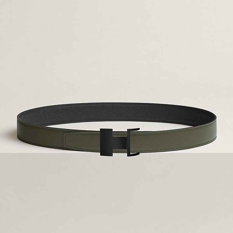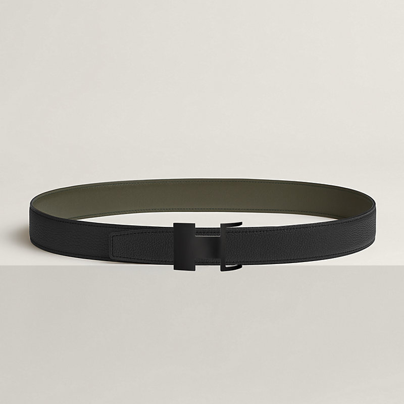 不锈钢皮带扣。Dive 32 So Black皮带扣运用几何设计与隐藏式曲线,巧妙嵌入皮腰带之中。皮革与金属优雅契合,呈现近似“H”字母的不对称造型。金属质感: So Black & Box 135和Togo小牛皮双面皮腰带。
