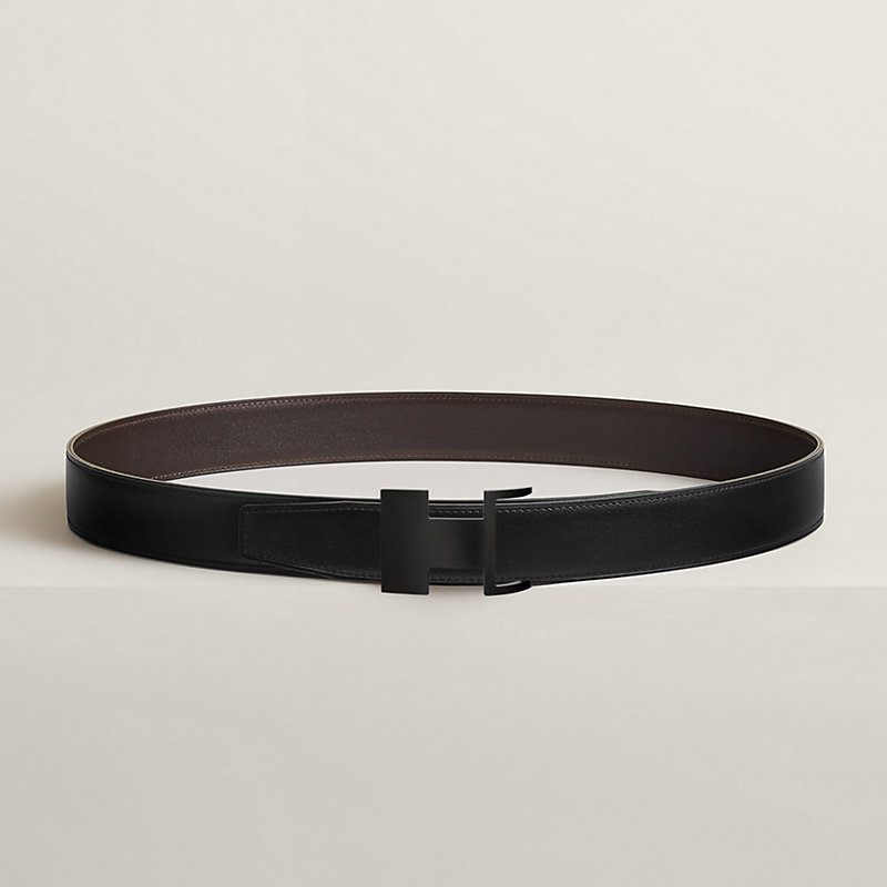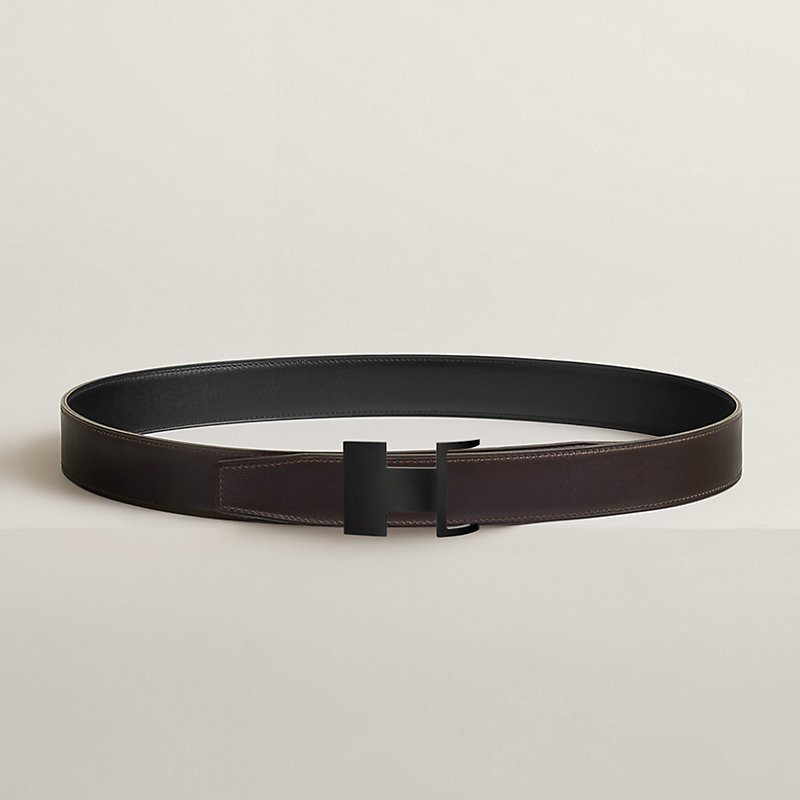 不锈钢皮带扣。Dive 32 So Black皮带扣运用几何设计与隐藏式曲线,巧妙嵌入皮腰带之中。皮革与金属优雅契合,呈现近似“H”字母的不对称造型。金属质感: So Black & Box 135小牛皮双面皮腰带。