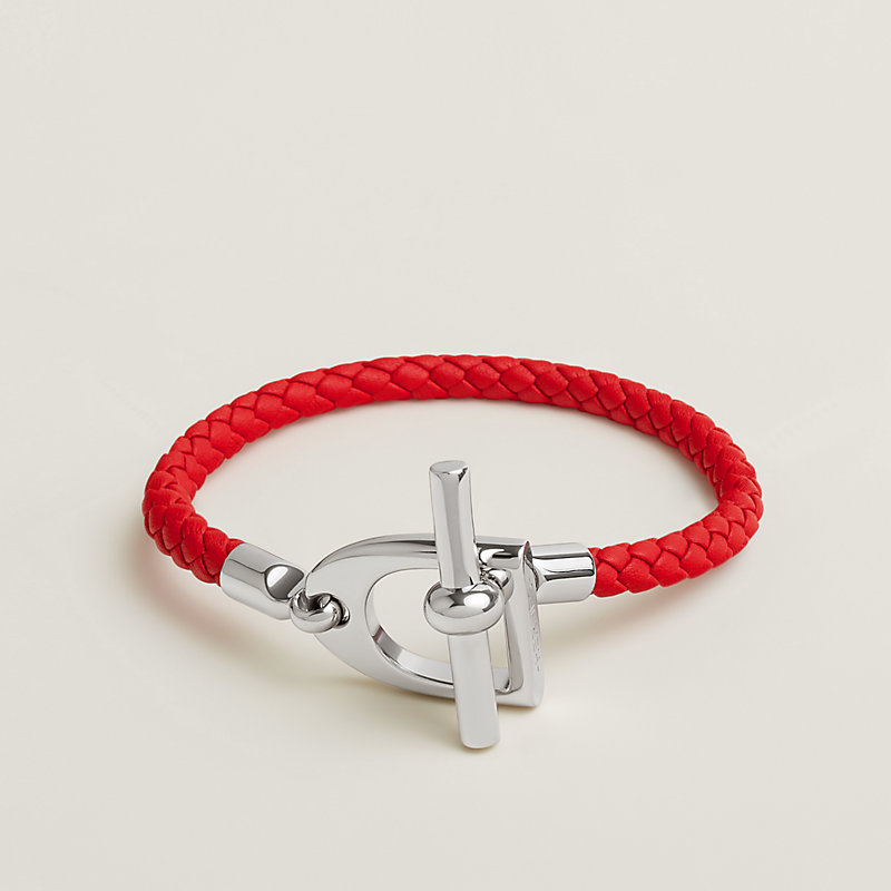 Swift小牛皮和金属编织手链,搭配灵感来自爱马仕马术传承的马镫形锁扣。