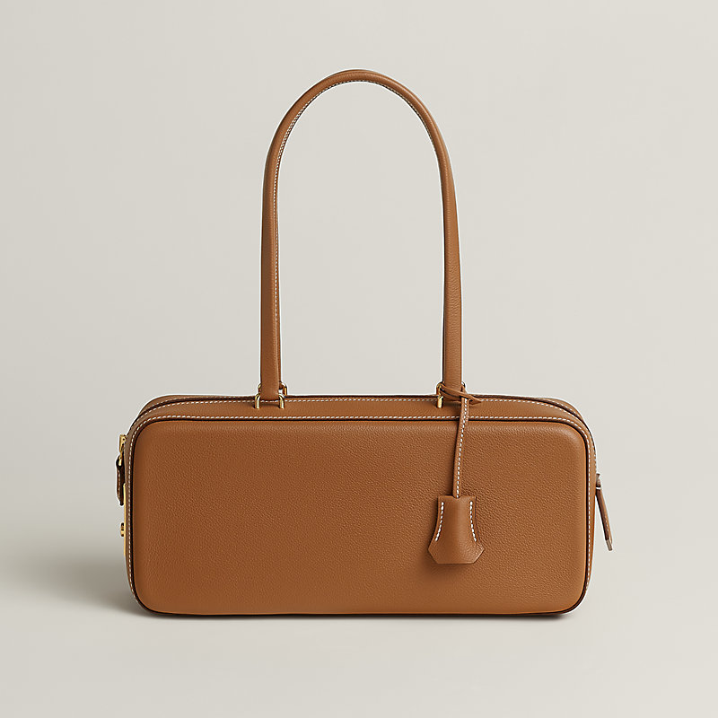 Faubourg Express手提包从一款旅行包的廓形汲取灵感,向2024年度主题——爱马仕巴黎圣诺雷奥福宝大道24号专卖店及品牌的悠久传承致敬。作品搭配金色或银色饰面锁扣,灵感源于Plume手提包和典藏Quirus包款的精巧设计与精湛工艺。从模具构型、提手接缝到锁扣珠饰,极简设计和严谨结构尽显鞍具大师和皮革工匠细致考究的技艺。这款现代时尚的包袋备有两种尺寸可选,可肩背或手挽,打造日常优雅造型。