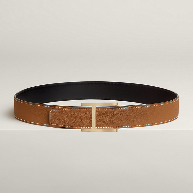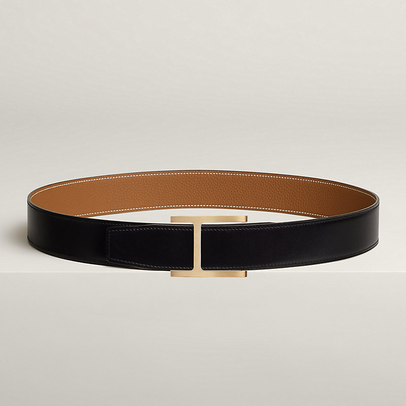 磨砂金属皮带扣。这款皮带扣重新演绎爱马仕经典标志,尽显摩登气息。金属线条与皮革相互交织,演绎两种材质之间的精妙融合。 & Box 135和Togo小牛皮双面皮腰带。