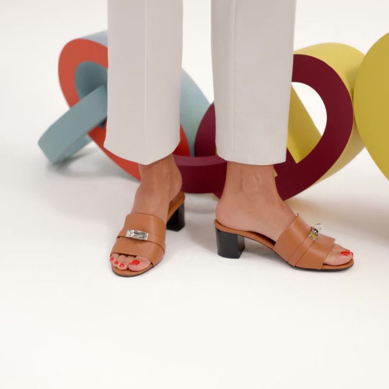 小牛皮高跟凉鞋,搭配经典Kelly鞋扣。