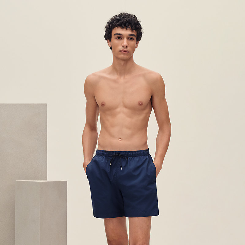 H图案帆布长款短裤(100%锦纶)。- 松紧腰头配有抽绳- 侧面口袋- 背面翻盖口袋,配有“Hermès Paris”字样镌刻按扣- 图案遇水即现正常版型,请选择您的常规尺码。