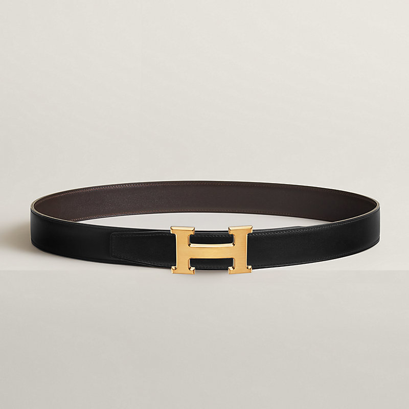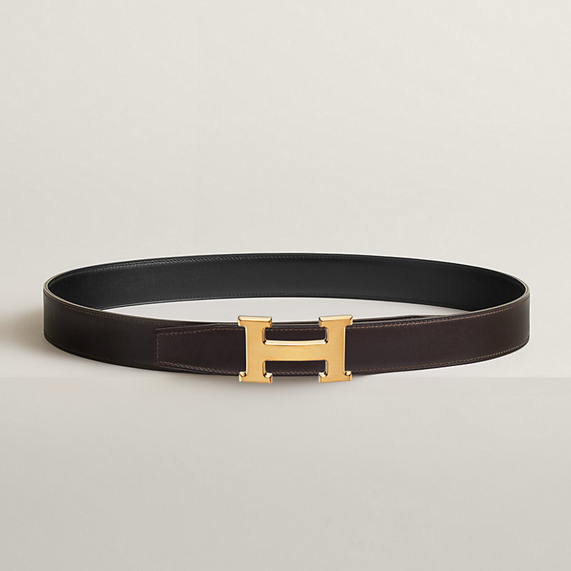 金属皮带扣。金属质感: 磨砂镀黄金 & Box 135小牛皮双面皮腰带。