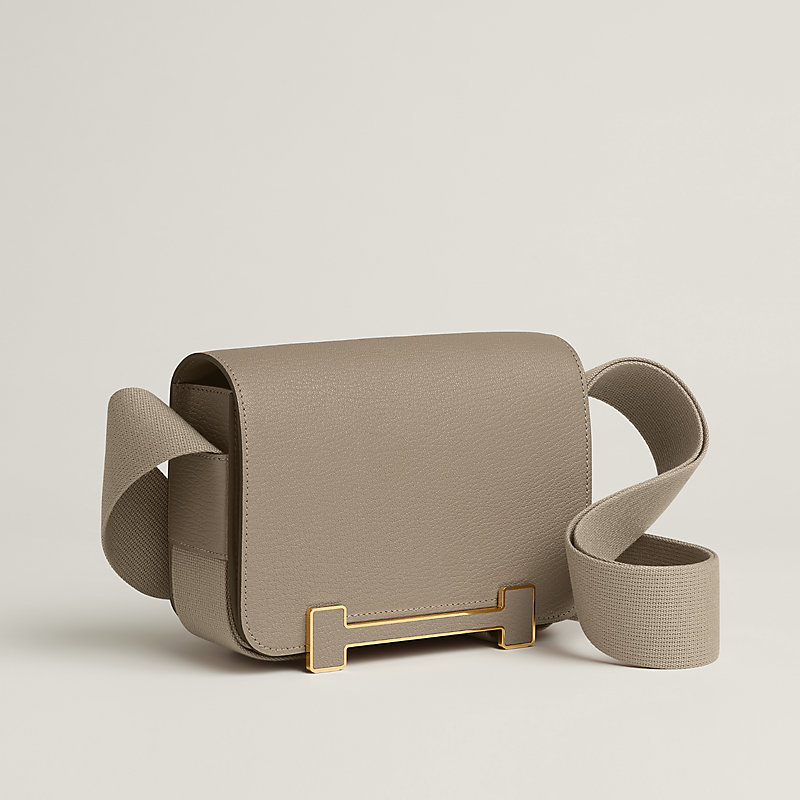 日式木屐行走时会发出咔嗒咔嗒的声响。此包款采用柔韧皮革打造而成,不仅结构分明,且锁扣开合时的声响与木屐亦有异曲同工之妙。"H"字母细节以皮革包覆,沿着横向插鞘延伸。经典细节设计巧妙,兼具数种功能,不仅是开合包款的锁扣,还能调整肩带长度,同时也是底部钉扣,如同包款底座。帆布肩带可轻松穿过两侧隔层式口袋上的带环,无论长短、肩背或斜挎皆能胜任,设计充满巧思。