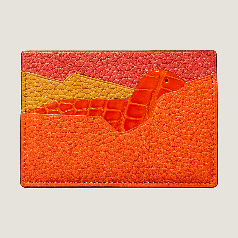 轻盈便携的设计演绎三个代代相传的故事。皮革卡包优雅灵动,呈现沼泽、浮冰与大草原的自然景观,亦描绘河马与鳄鱼、大象与貘、海狮与北极熊的精巧形象。光滑或粒纹,珍贵或经典,各式皮革材质均选自Hermès材料储藏室,经由缝制抛光。每件作品配有多个隔层与收纳空间,便于放置卡片。以精美几何图案讲述生动故事,忠实呈现petit h勇于尝试的大胆精神。