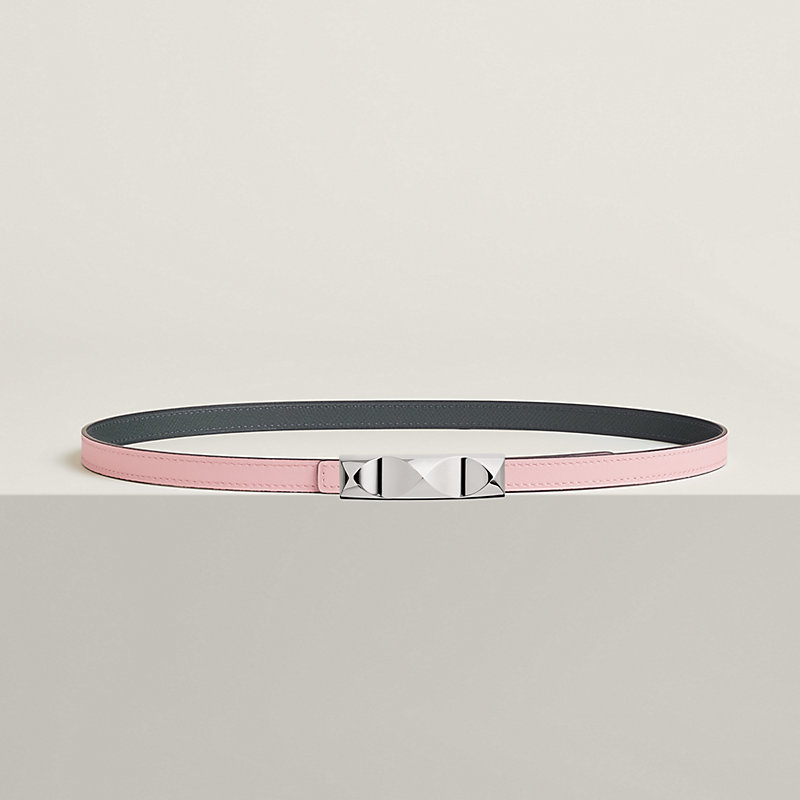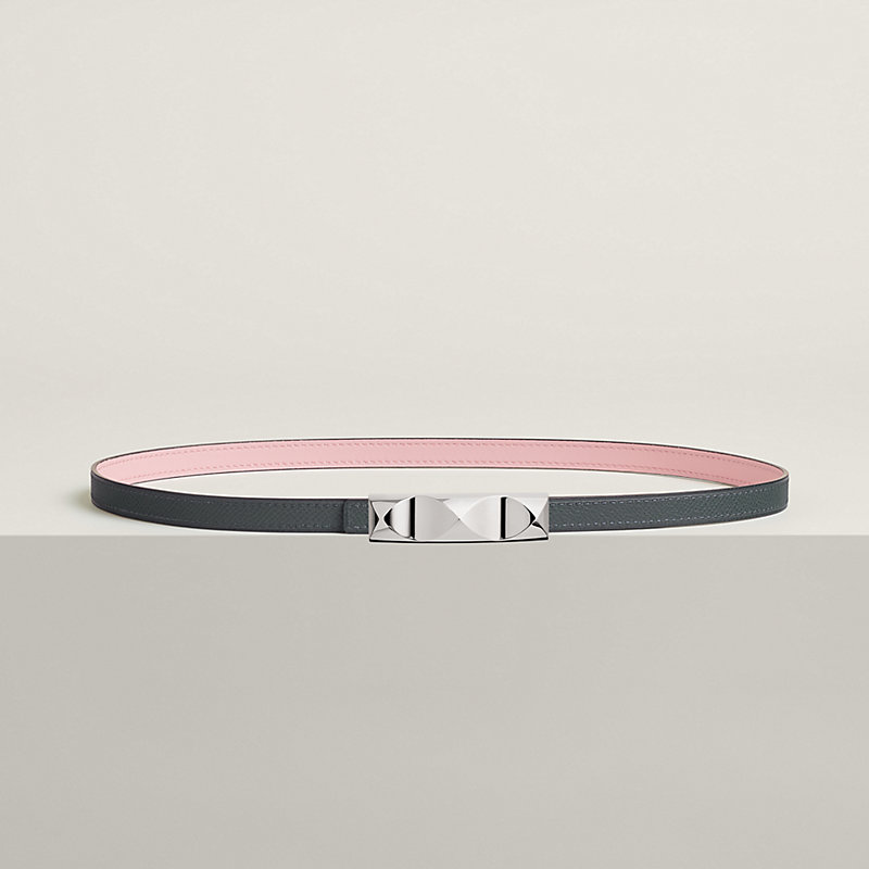 金属皮带扣。Medor铆钉的造型经过变换,打造出时尚的日常皮带扣。铆钉的刻面相互融合,展现无尽绵延的效果。 & Swift和Epsom小牛皮双面皮腰带。