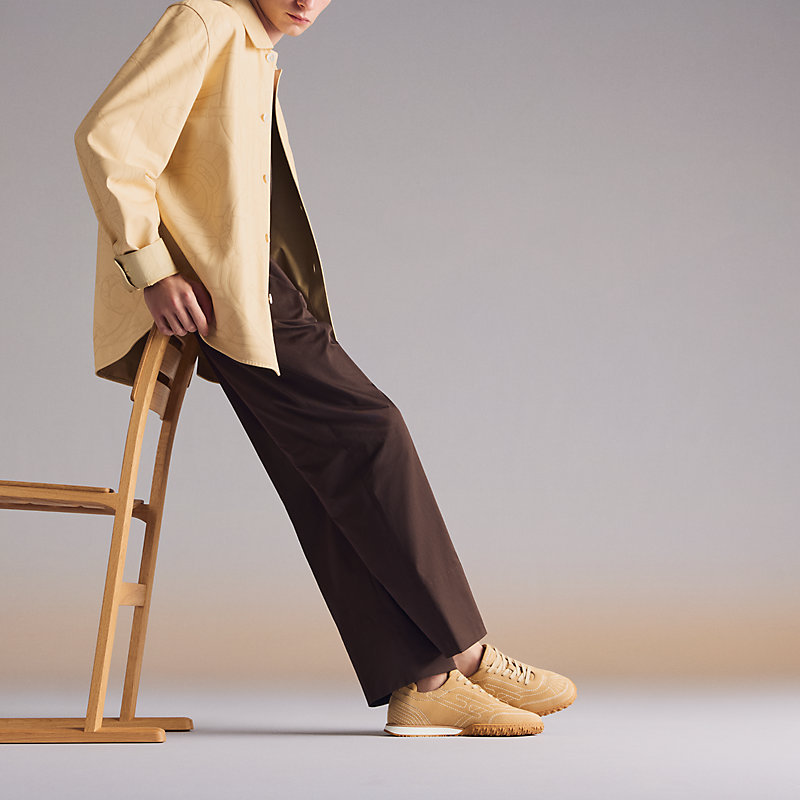 缝线麂皮山羊皮运动鞋,饰有撞色图案和标志性“H”细节。打造前卫复古造型。包含第二副鞋带。建议您选择常用尺码。