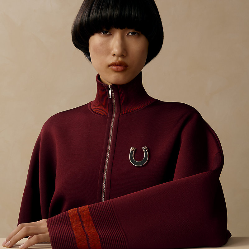 Box小牛皮和金属胸针。Jockette系列搭配金属和皮革,重新诠释马术世界的经典元素。马蹄铁以其原本造型和抽象图案呈现于更为精致柔美的设计中。