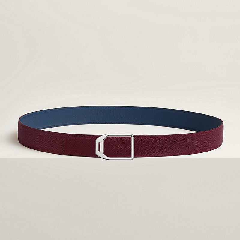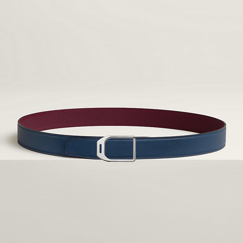 金属皮带扣。略呈锥形的皮带扣优雅大方,以现代风格重新演绎马镫,在形状和轮廓之间达成巧妙平衡。 & Epsom小牛皮双面皮腰带。