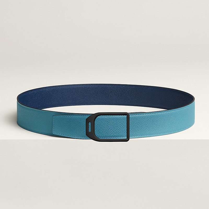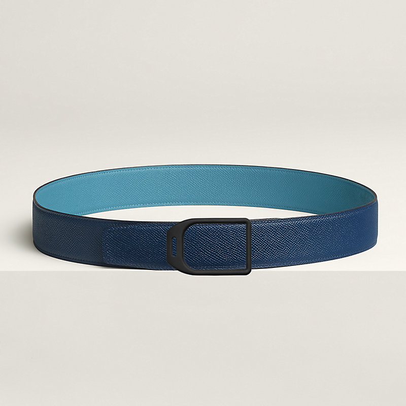 金属皮带扣。略呈锥形的皮带扣优雅大方,以现代风格重新演绎马镫,在形状和轮廓之间达成巧妙平衡。 & Epsom小牛皮双面皮腰带。