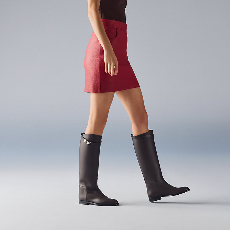 Jumping长靴的设计灵感源自爱马仕深厚的马术传统。无论是标志性的Kelly鞋扣,亦或简洁流畅的线条,无不彰显精湛工艺,同时凝聚爱马仕的独特风格。这款时尚马靴不断与时俱进,每季皆推出全新配色、造型与材质。