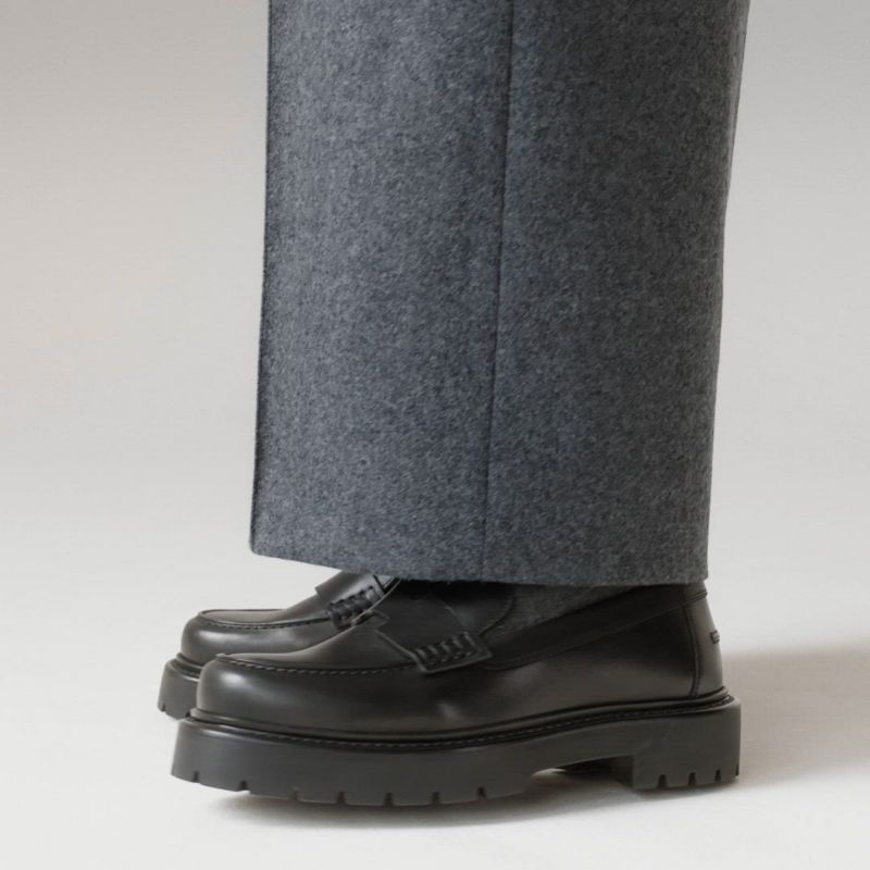 小牛皮乐福鞋,搭配橡胶厚底,经典“H”型鞋面细节。