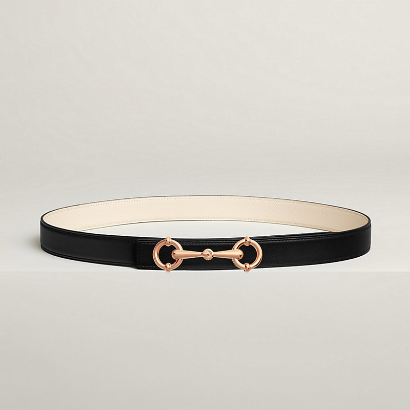 金属皮带扣。这款现代的纤细皮带扣采用马衔造型,致敬爱马仕的马术传统。 & Swift和Epsom小牛皮双面皮腰带。