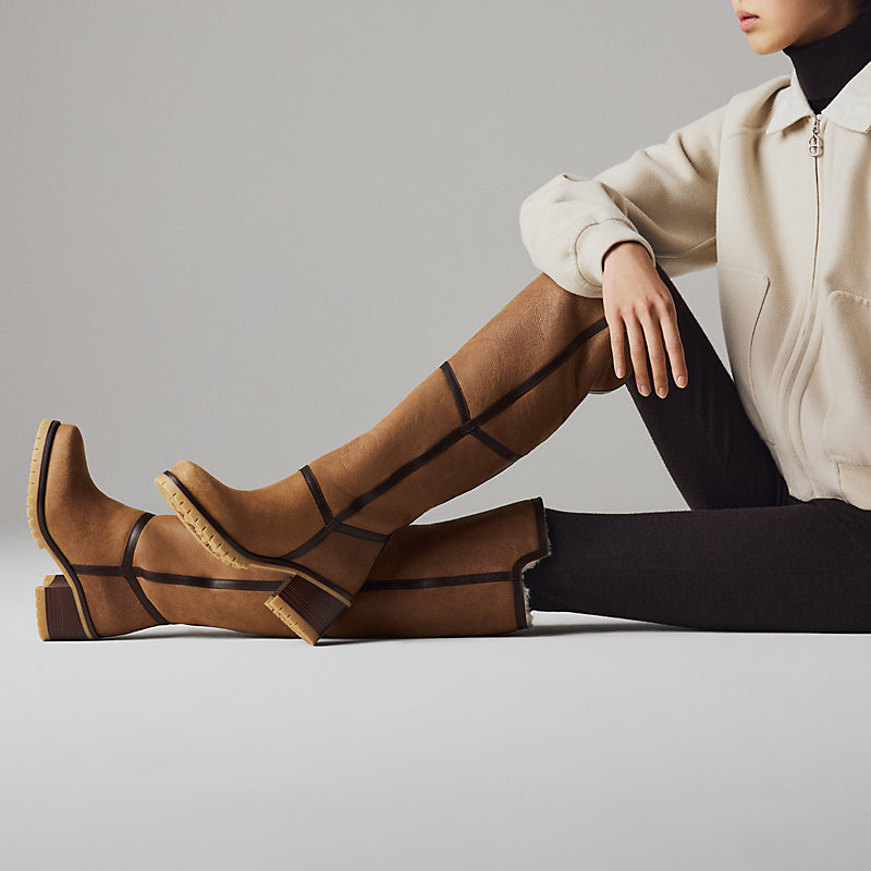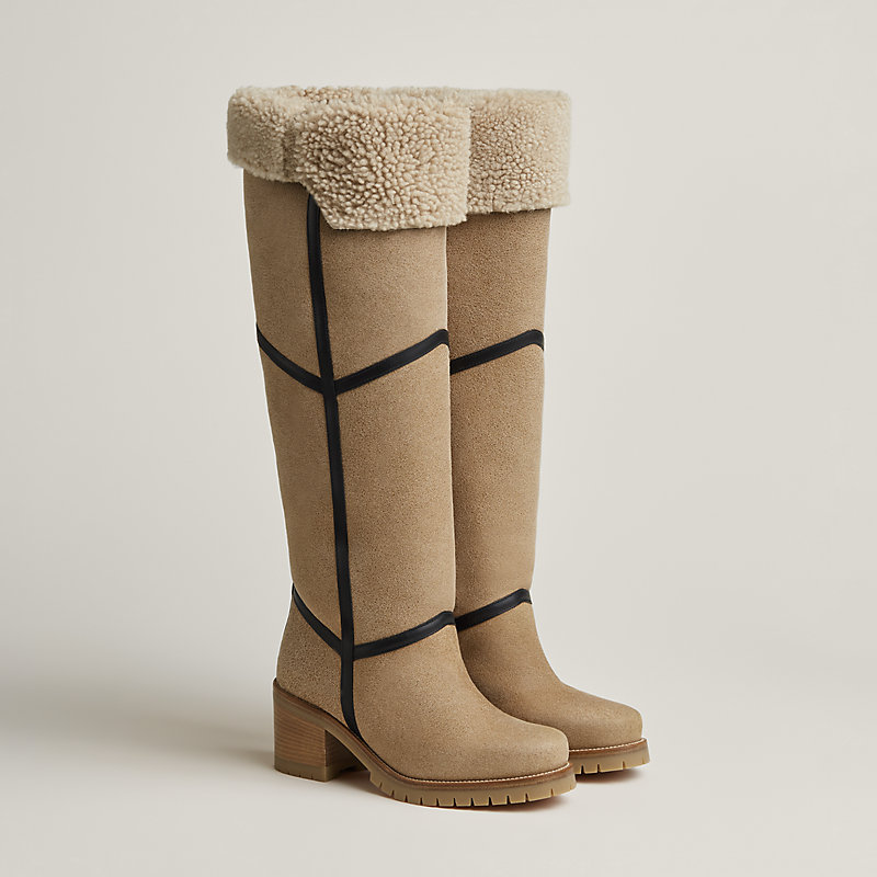 羊毛皮和小牛皮高跟长靴,打造时尚都市造型。