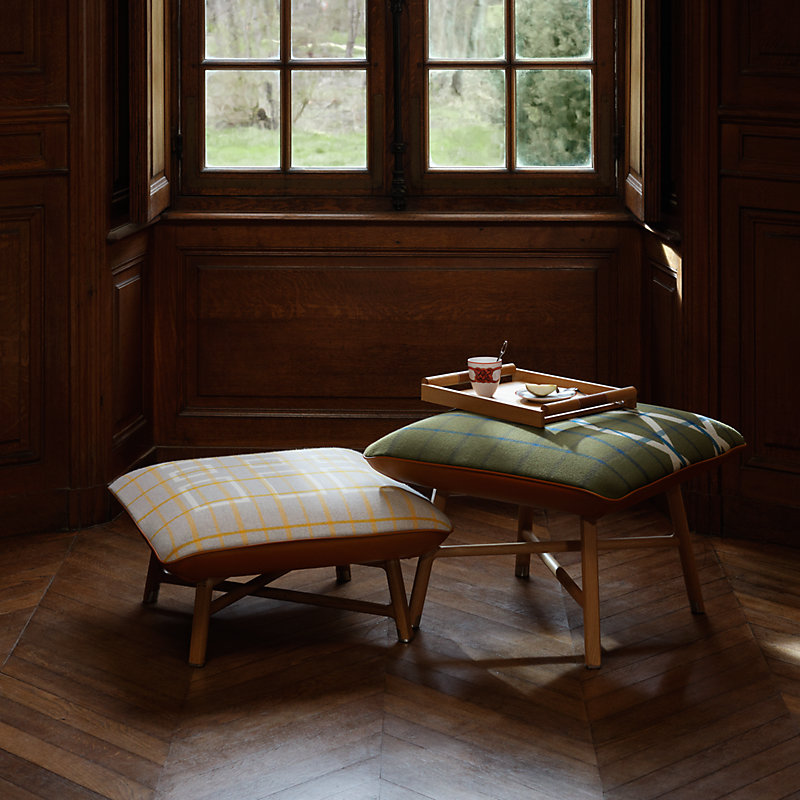 - “Cadre”图案坐垫,包覆H小公牛皮和100%美利奴羊毛面料
