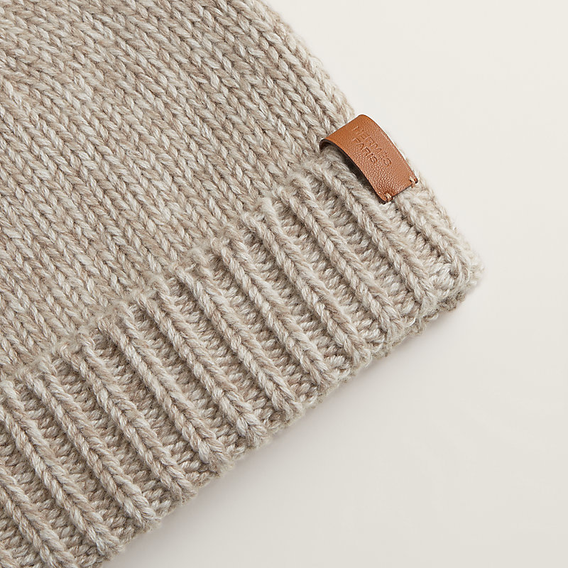 杂色山羊绒针织男士软帽。- 羊羔皮“Hermès Paris”烫印字样标签这款软帽可搭配Louis手套。