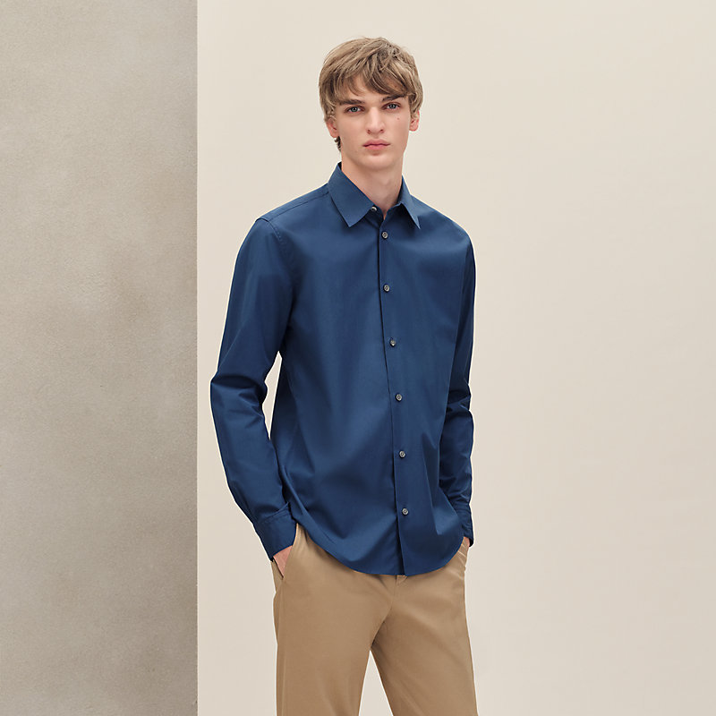 纯色精纺棉府绸修身衬衫(100%棉)。- Louis衣领- 纯珍珠母贝纽扣- 单叠袖口饰有镀钯马鞍钉纽扣正常版型,请选择您的常规尺码。