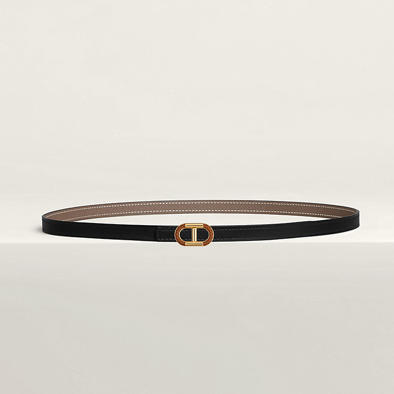 Swift小牛皮和金属皮带扣。这款皮带扣饰有精美的编织元素,展现标志性“H”字母和链环造型。 & Swift和Epsom小牛皮双面皮腰带。