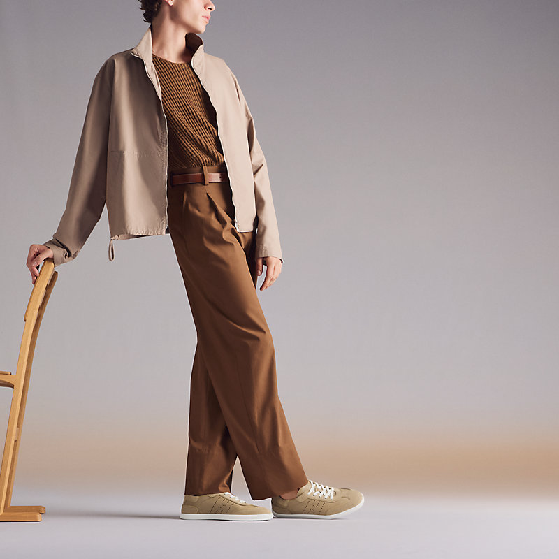 运动风格山羊皮、麂皮山羊皮和小牛皮运动鞋,饰有镂孔“斜体H”图案细节。