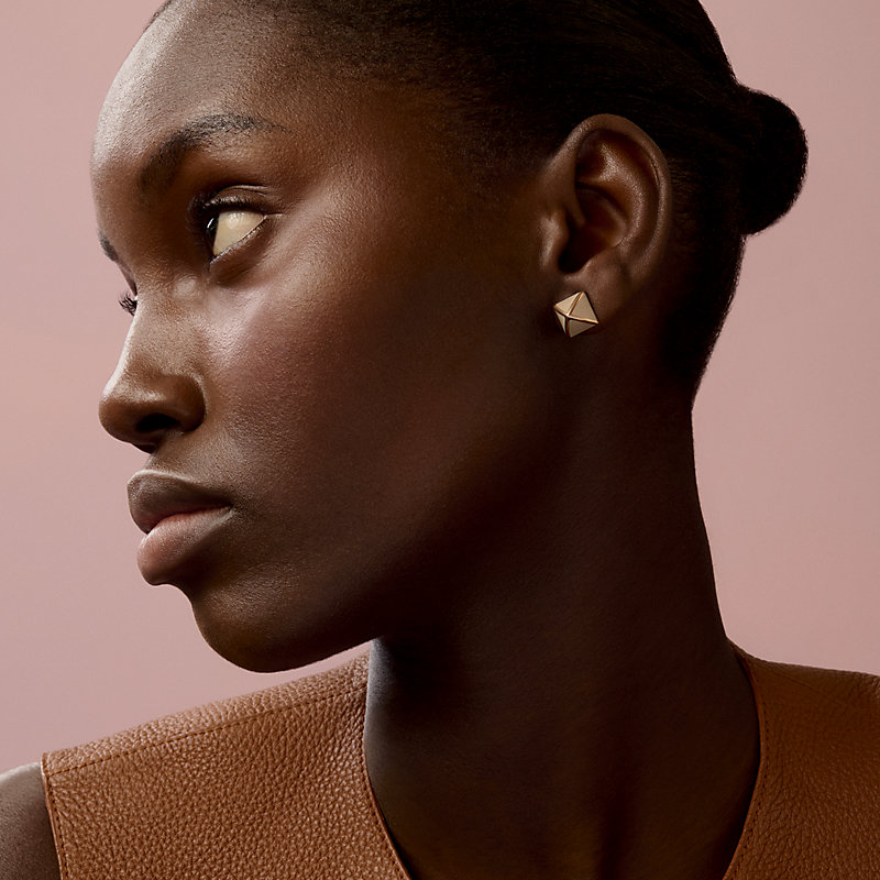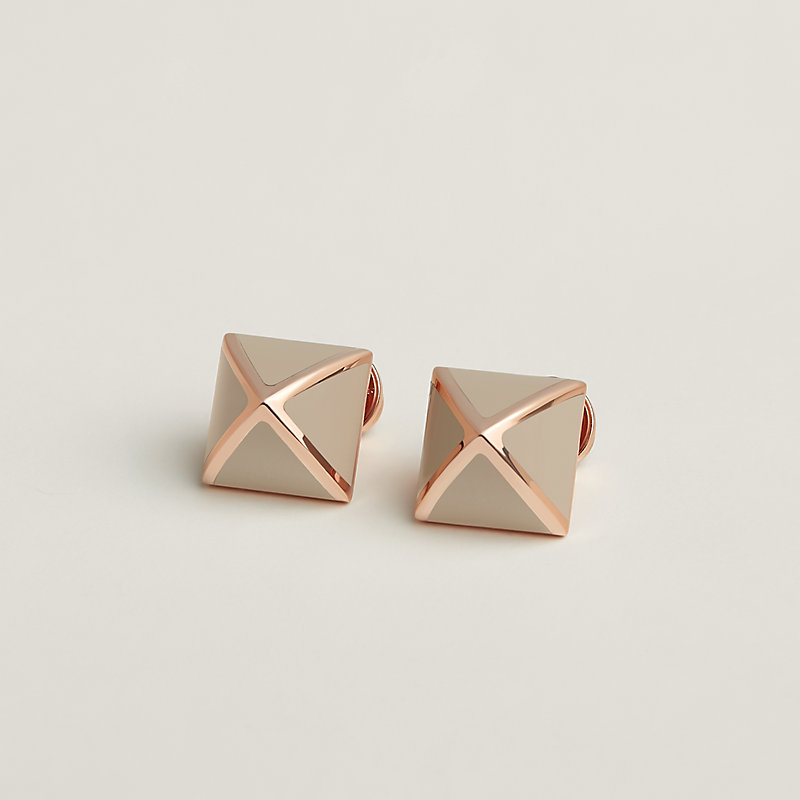 漆艺金属耳环。灵感源自Collier de Chien系列中爱马仕的标志性元素——金字塔形铆钉,以彩色漆艺风格重新演绎。