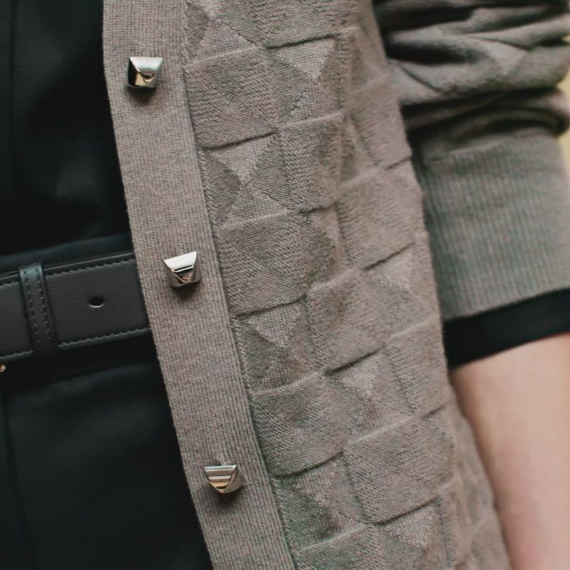 “Medor”图案柔软耐穿针织长袖开衫(97%初剪羊毛,2%锦纶,1%氨纶)。