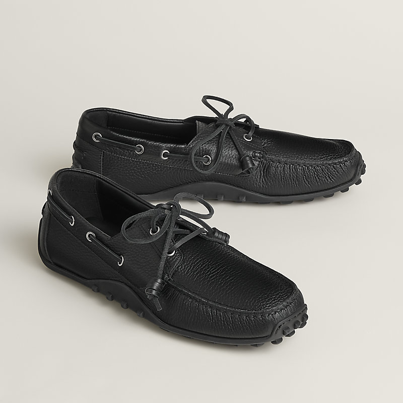 鹿皮乐福鞋,经典“H”型鞋面细节,鞋底饰有经典“Medor铆钉”。