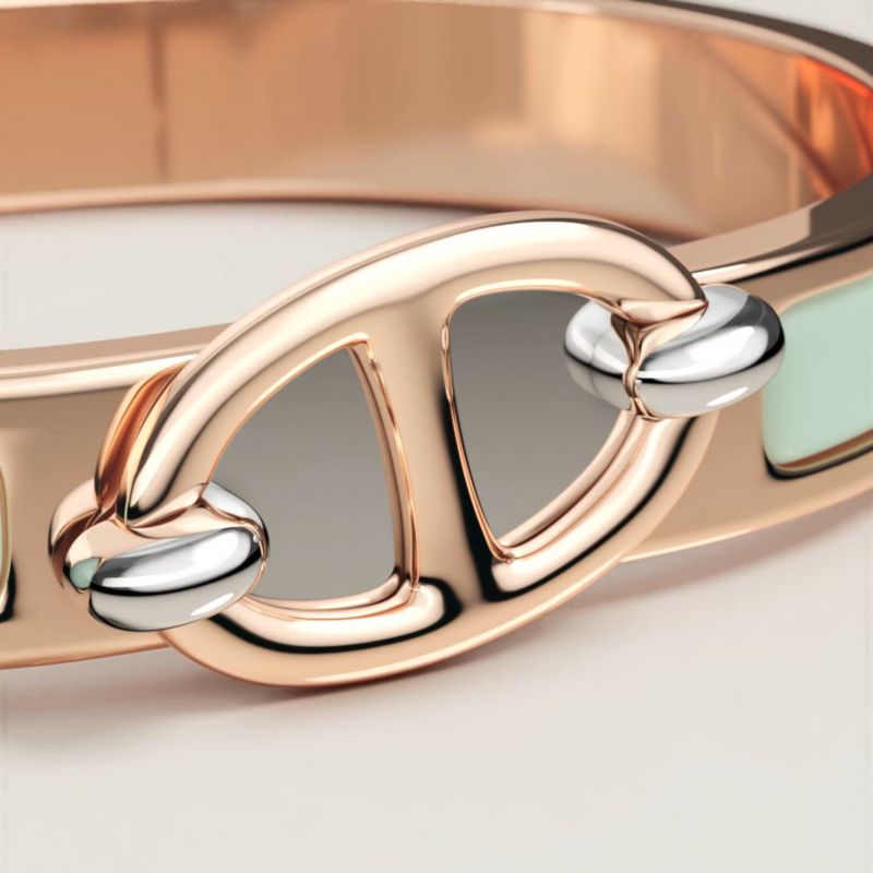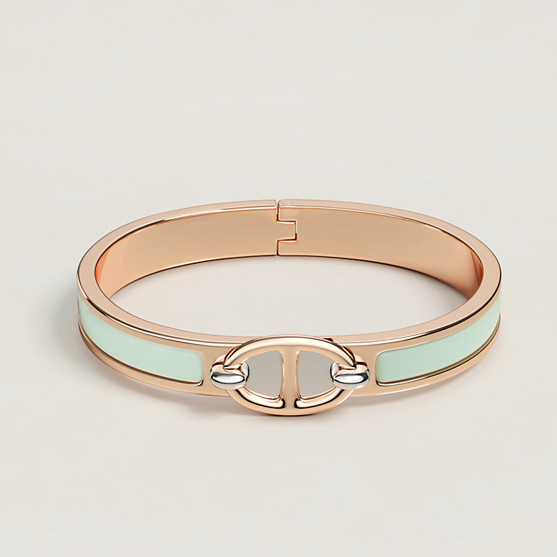 纯色珐琅窄版手镯。精巧的锁扣采用经典Chaine d'Ancre设计,令手镯开合自如。