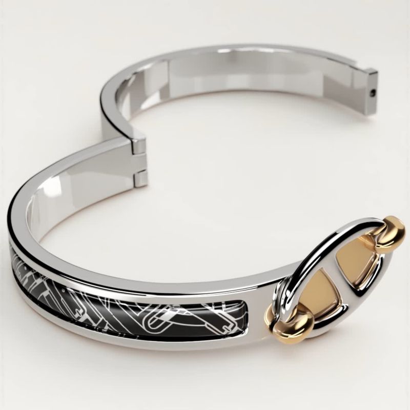 如同一场逆向创作,三步完美呈现爱马仕手镯。1、将手镯灵巧滑向腕间。2、轻合搭扣。3、旋转搭扣。咔哒,创作完成!