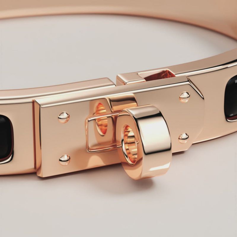 纯色珐琅窄版手镯。精巧的锁扣采用经典Kelly设计,令手镯开合自如。