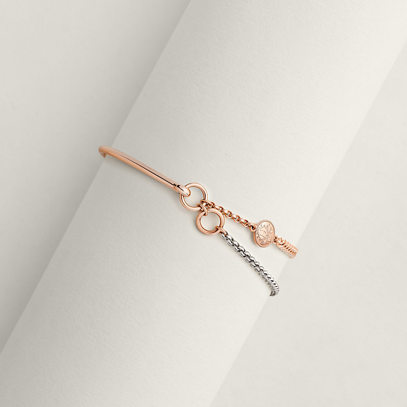 1873年,蒂埃利·爱马仕(Thierry Hermès)在开设于巴黎Basse-du-Rempart街56号的工坊中,打造出精美非凡的鞍具杰作。于是,马匹便成为了爱马仕创立之初服务的首批顾客。1927年,马术世界激发了爱马仕的创作灵感,品牌的第一款首饰Filet de Selle手镯应运而生。无论是驰骋中的骏马和马衔、马具亦或爱犬项圈,马术系列不断演绎各种造型,以充满生机的方式致敬品牌的根源。