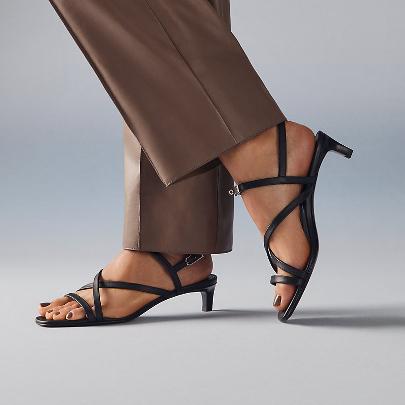 小牛皮高跟凉鞋,搭配迷你版本的经典Kelly鞋扣。
