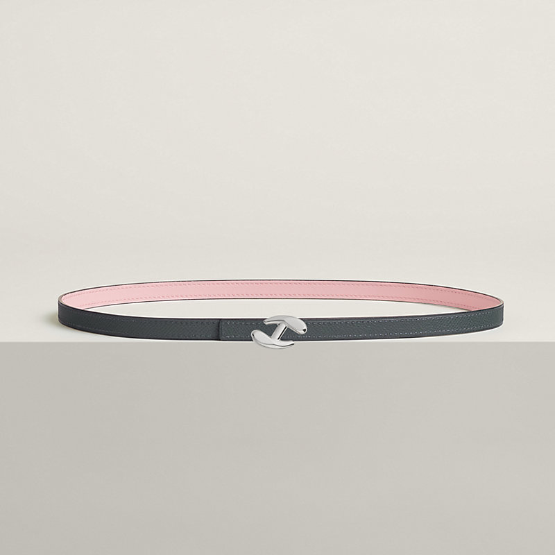 金属皮带扣。重新演绎经典Chaine d'Ancre设计,展现圆润的美学风格。 & Swift和Epsom小牛皮双面皮腰带。