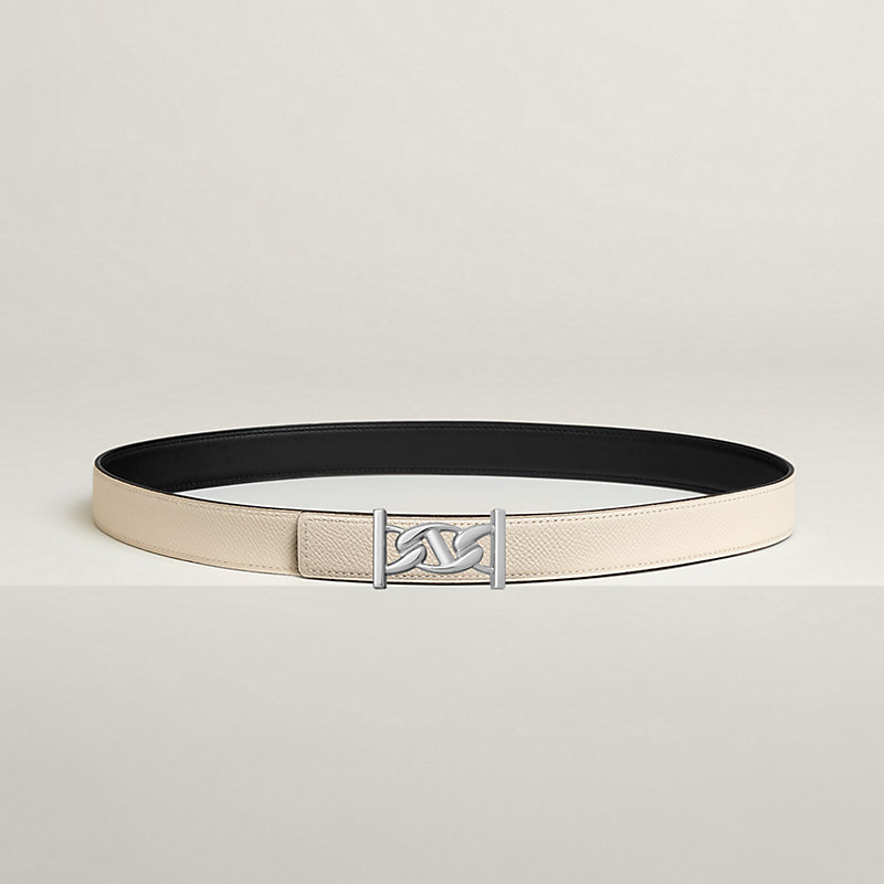 金属皮带扣。重新演绎经典Chaine d'Ancre设计,展现圆润的美学风格。 & Swift和Epsom小牛皮双面皮腰带。