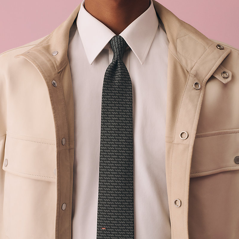 手工缝制重磅真丝领带(100%桑蚕丝)。这件蕴含创意巧思的作品饰有令人惊喜的细节,佩戴这款精美领带,让一切皆有可能。仅有一条规则:享受佩戴它的乐趣!自1949年以来,位于法国里昂的爱马仕工匠以精湛技艺,精心制作爱马仕领带。/自1949年以来,爱马仕领带由位于法国里昂的工匠以精湛技艺制作而成。