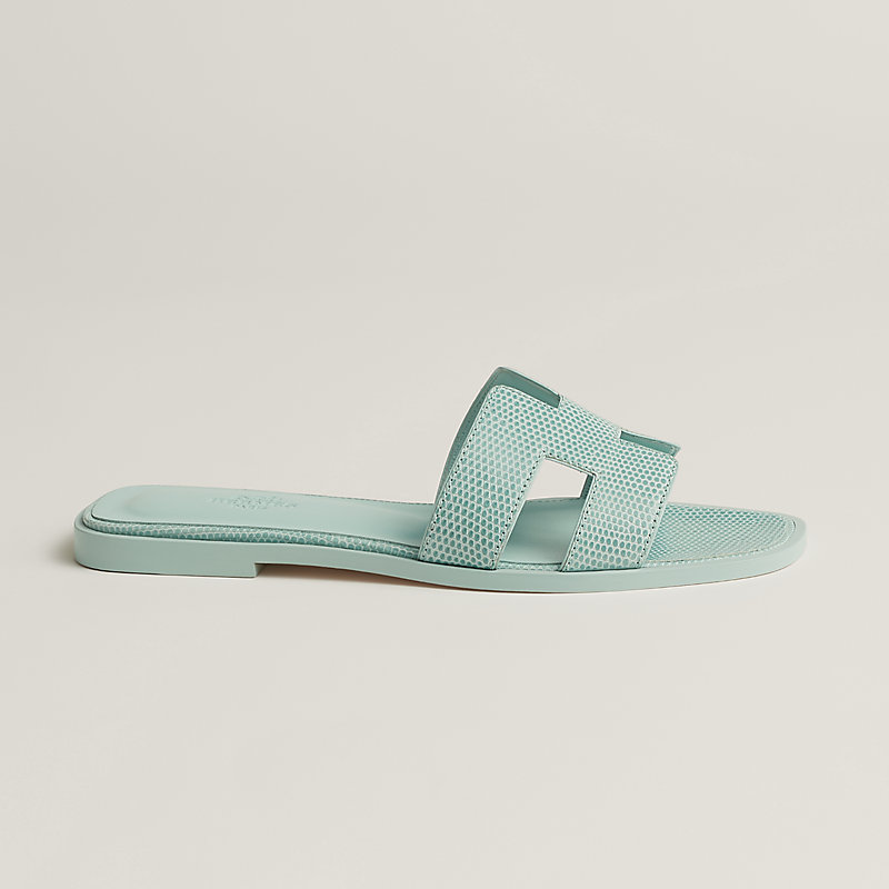 亮面爪哇蜥蜴皮凉鞋,经典“H”型鞋面细节。