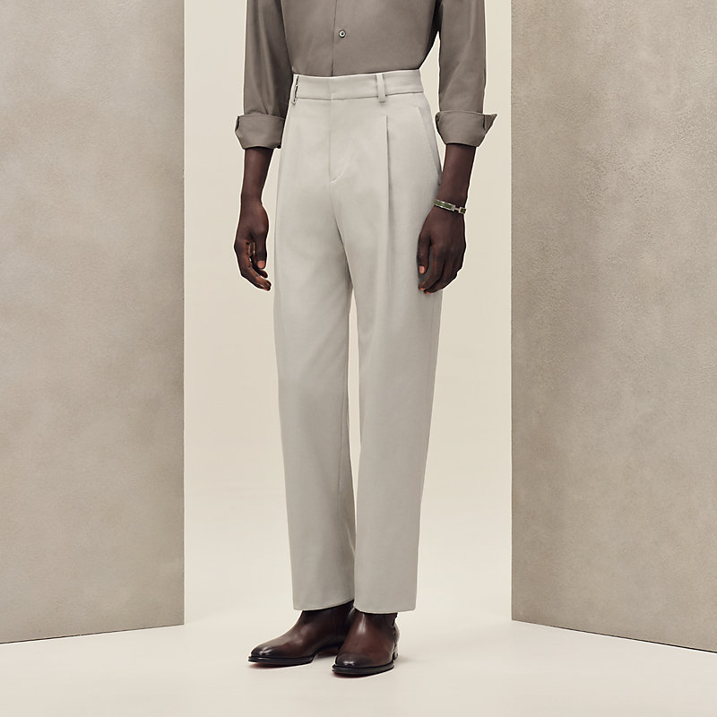 防泼水斜纹棉直筒褶裥长裤(100%棉)。
